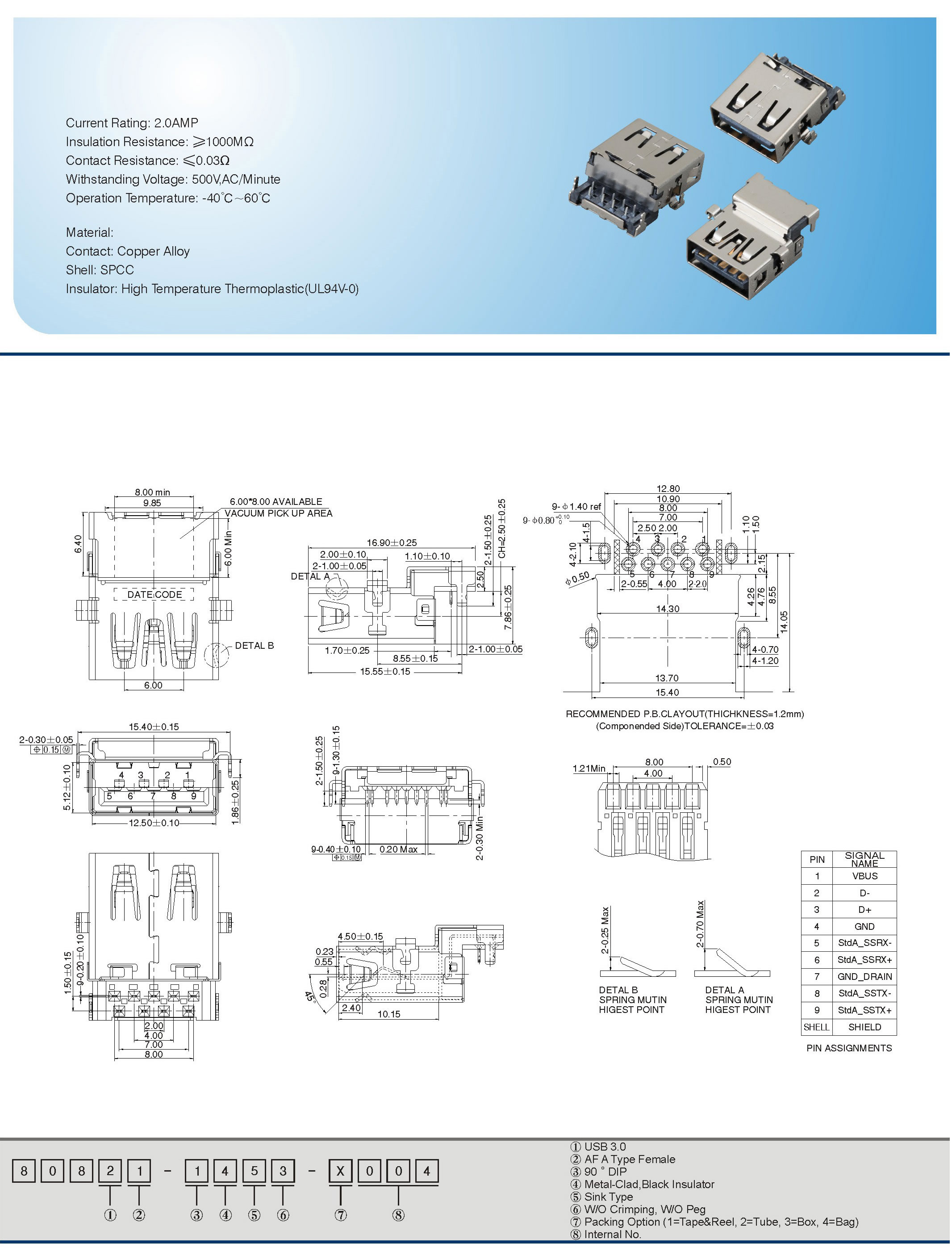USB-3.0-AF-90° -DIP-FE-B-WB-CB=2.5