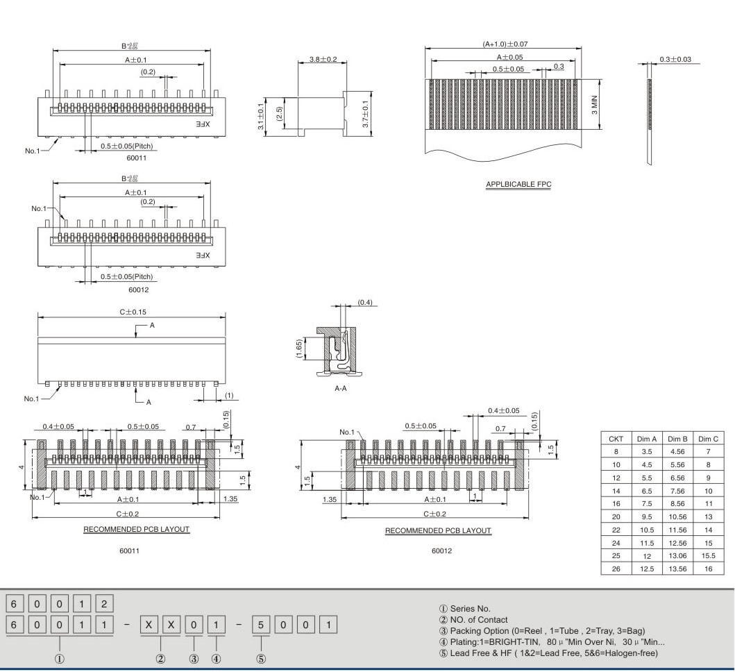 FPC CONN.NON-ZIFStraight SMT, H=3.8