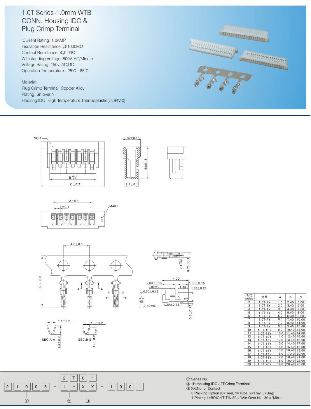 Housing IDC: High Temperature Thermoplastic(UL94V-O)