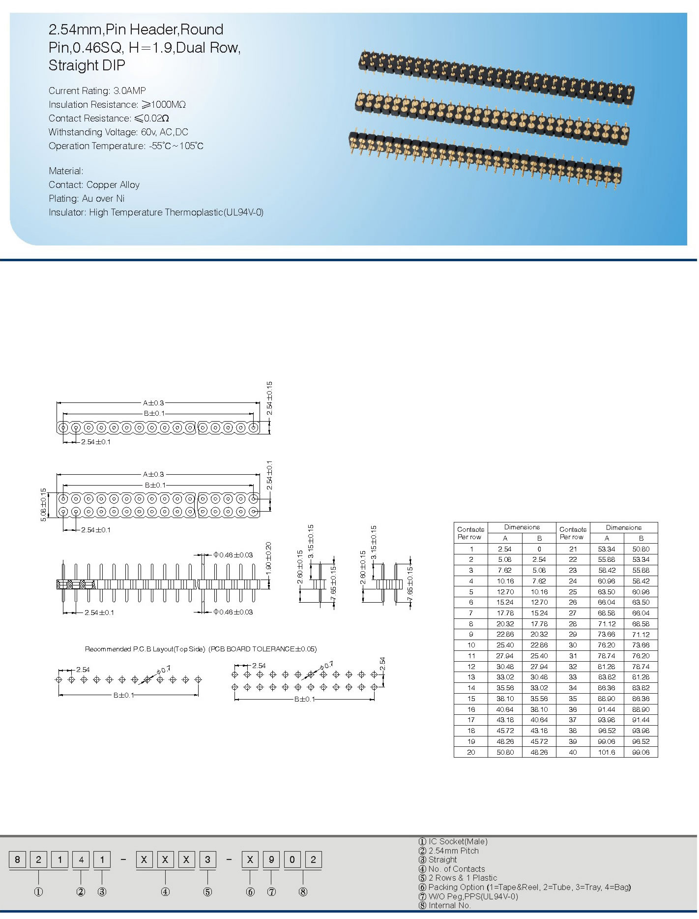 Pin,0.46SQ, H=1.9,Dual Row,
